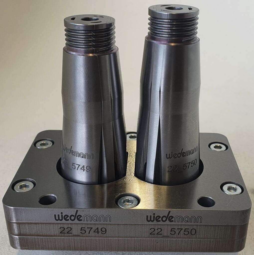 Bei stirnseitigen Hinterscheidungen oder langen Konturen ist der Einsatz einer mitlaufenden Kappe notwendig. Diese Kappe wird durch den Einfallkern geführt. Die Kühlungsmöglichkeit befindet sich in der Führungsstange der Kappe.